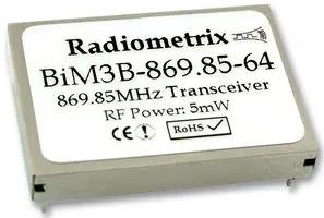 Rf Mod, Txrx, Fm, 869.85Mhz, 64Kbps; Rf Modulation:fm; Data Rate Max:64Kbps; Frequency Max:869.85Mhz; Sensitivity Dbm:-101Dbm; Supply Voltage Min:2.9V; Supply Voltage Max:16V; Transmit Power:14Dbm; Module Interface:serial; Supply Rohs Compliant: Yes